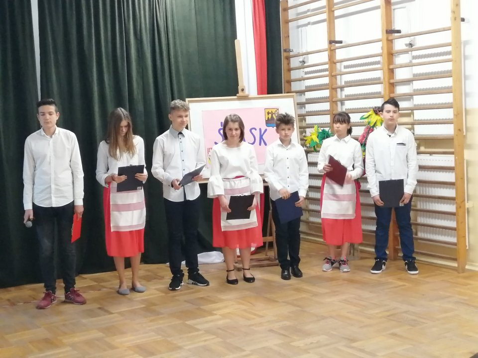 15 maja 2019r. uczniowie klasy VII zabrali całą szkołę na wędrówkę po Śląsku. Uczniowie przygotowali prezentację multimedialną prezentującą geografię, historię, tradycje tej krainy geograficznej. Zmagali się z gwarą śląską poprzez wiersze Jana Brzechwy. Zatańczyli Trojaka, za którego zostali nagrodzeni gromkimi brawami. Na zakończenie wszystkich poczęstowali śląskimi szklokami.